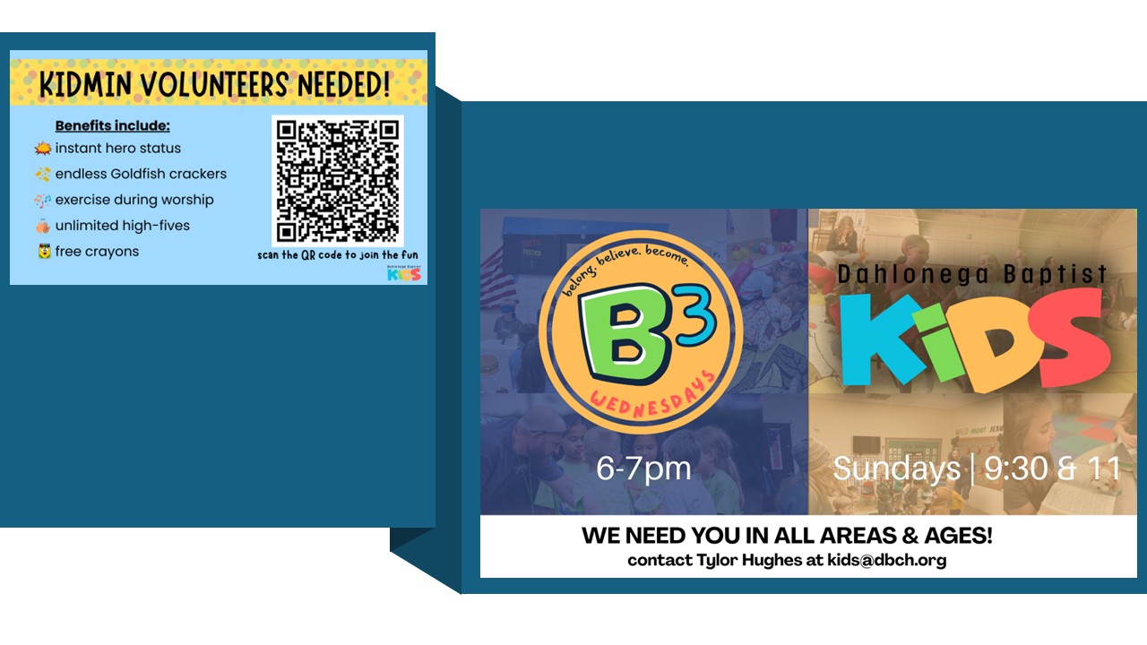 Additionally, we make it our mission to provide a safe place for children to worship and learn about Jesus. We make the safety of children a top priority. Because of that, we have a detailed check-in process for our children’s ministry that is based upon security and communication. The first time that you visit, be prepared to leave yourself an extra ten minutes to get signed in downstairs and receive any information you will need. At Dahlonega Baptist, we observe a strict Child Protection Policy that ensures accoutability and care. All of our Children’s workers have submitted to a background check and review prior to being cleared to serve in our ministries to Children & Families.